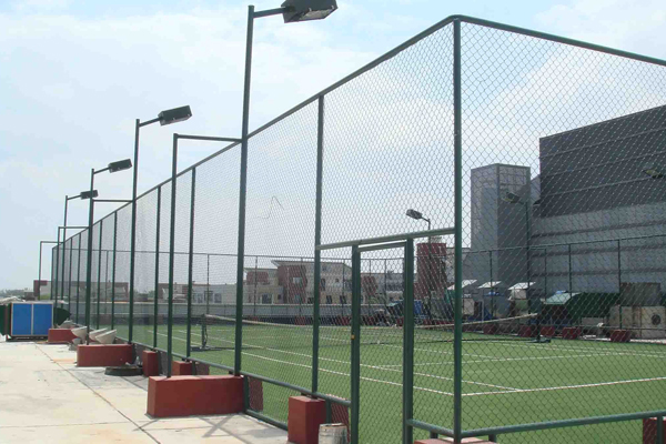 • 【产品简介】:球场护栏网的应用原则和实例,网球场镀锌勾花网系统经济提供保护与安全的网球场。球场护栏网的高度:球场护栏网两侧围网的高度为3米,两端4米。场地若临居民区或马路,其高度均匀为4米以上,另外在球场护栏网的边侧为了使观众看比赛容易,可设H=0.80米的围网。屋顶网球场